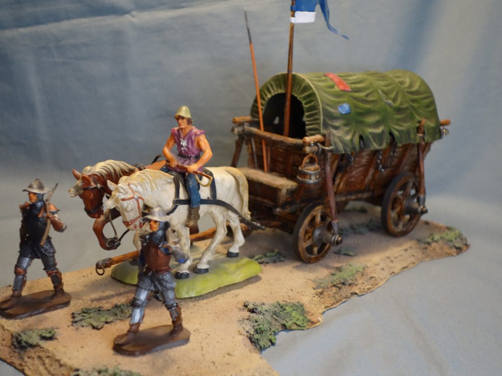 Der Wagen und die Plane vom Figurenkobold patiniert ,komplett mit orginalem Gespann, Kutscher , und 2 Kriegsknechten. Preis auf Anfrage!